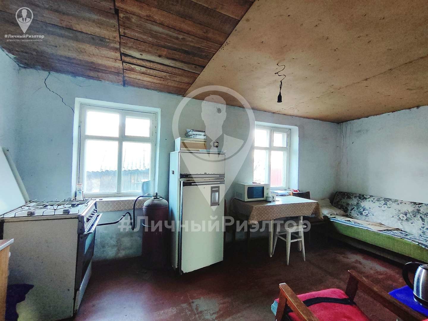 - Планировка: 2 спальни и просторная кухня. Использовался как дача (заведено только электричество), но отлично подходит для ПМЖ — газ и вода по границе.