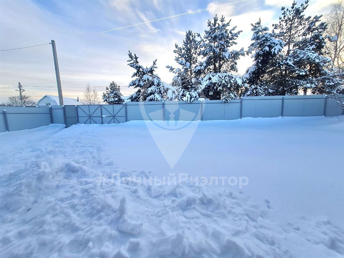 Участок 10 соток, огорожен забором, ровный, с распашными воротами и калиткой.