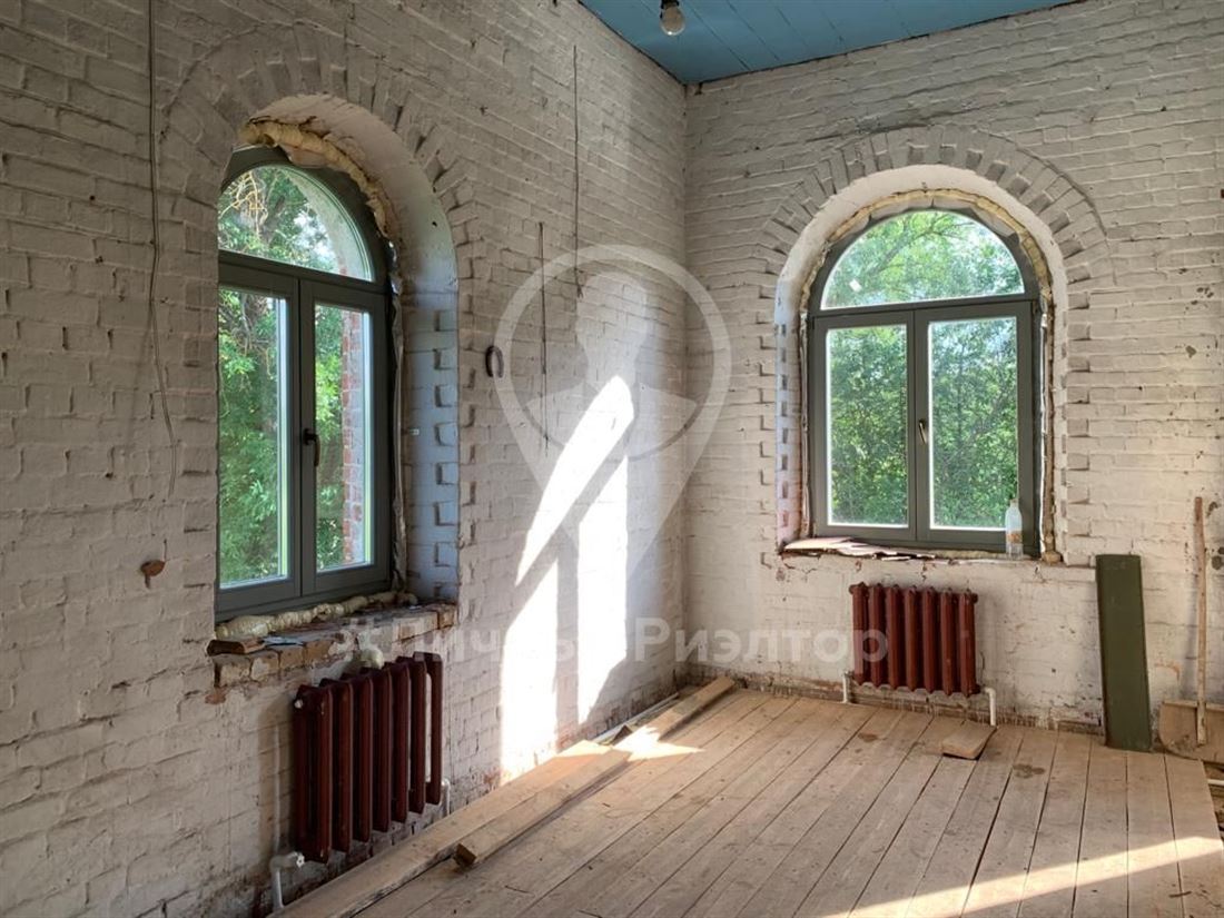 Деревянные арочные окна по периметру всего дома, от этого много света.