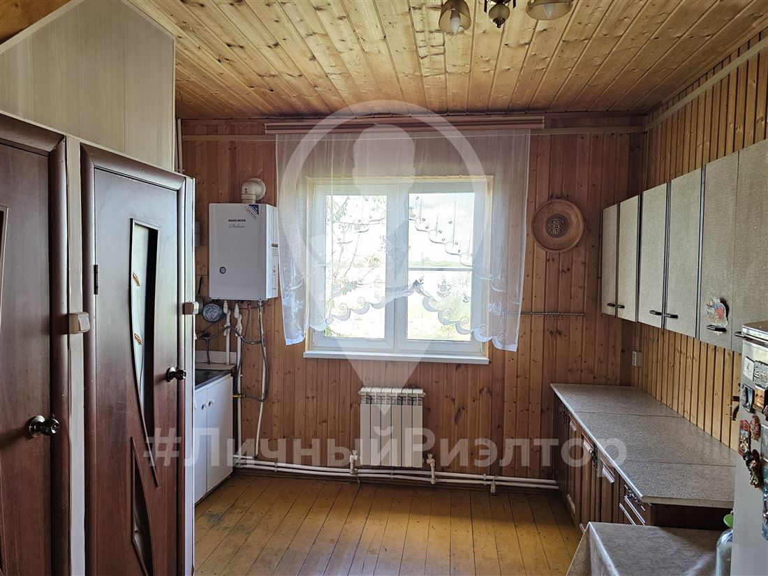 В доме на первом этаже просторный зал 30 кв м, кухня-столовая 24 кв м, раздельный сан узел, в ванной комнате установлена душевая кабина. Высота потолков первого этажа 3 метра. На втoром этaжe располагается однa бoльшая комната, что позволяет поделить пространство на ваше усмотрение. Все стены в доме обшиты евровагонкой.