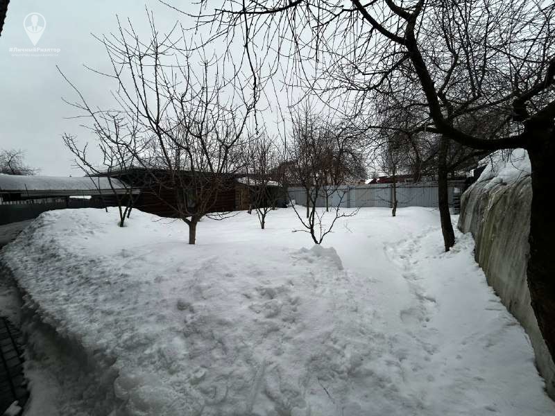 Сад: плодоносящие деревья (черешня, груша, яблоня, вишня) и кусты смородины. Участок украшен декоративными туями и цветами.