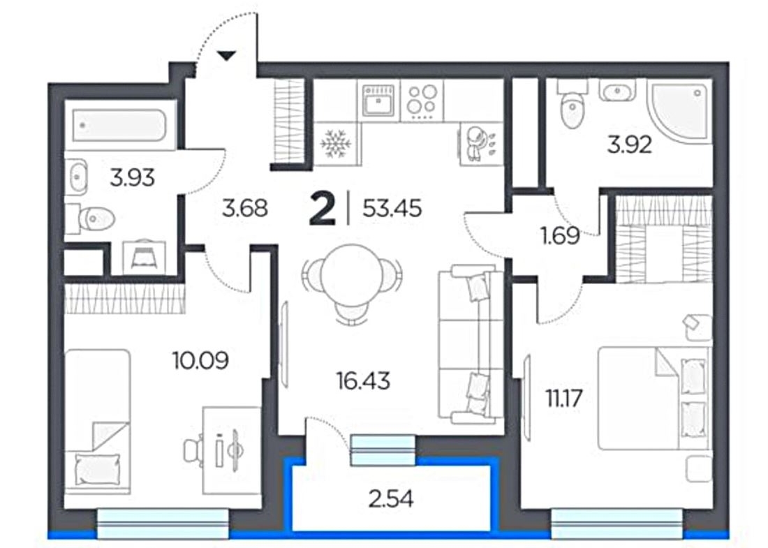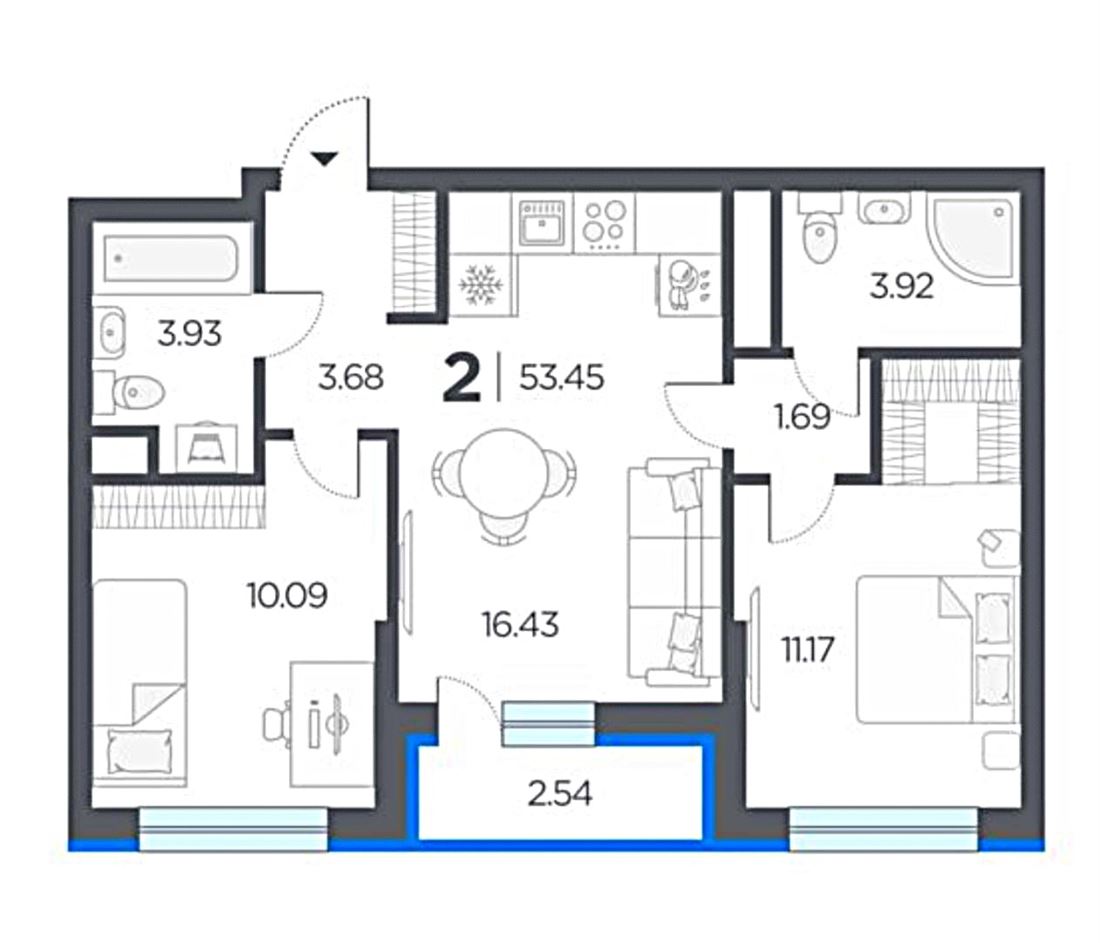 Предлагается просторная двухкомнатная квартира в новом, активно развивающимся микрорайоне со всей необходимой инфраструктурой!