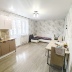 При входе в квартиру находиться коридор с гардеробной, далее расположена большая комната площадью 17 кв. м. с выходом на балкон, просторная кухня правильной формы — 9 кв. м.