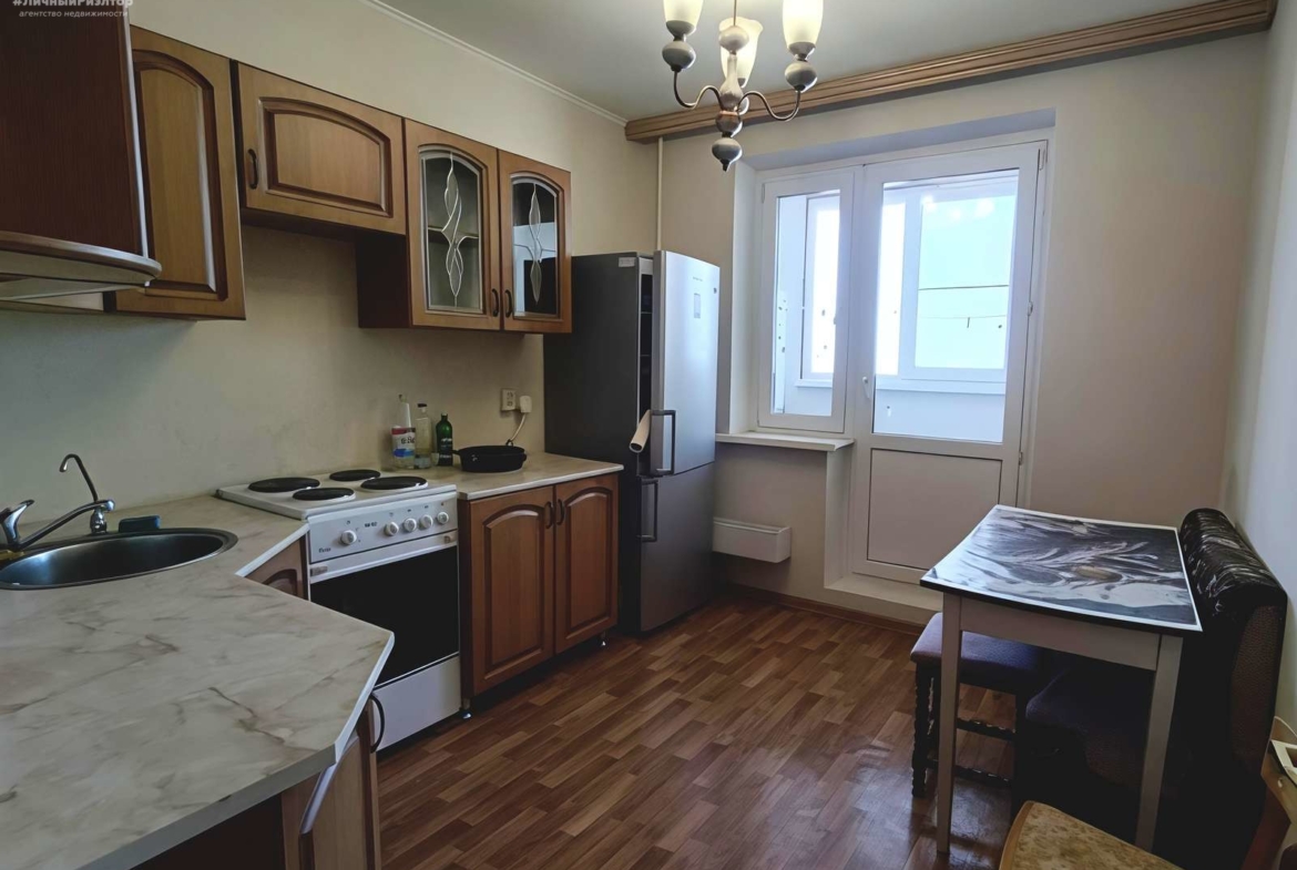 Вместимтельная кухня , также с выходом на балкон — отличное пространство для кулинарных экспериментов и семейных ужинов.
