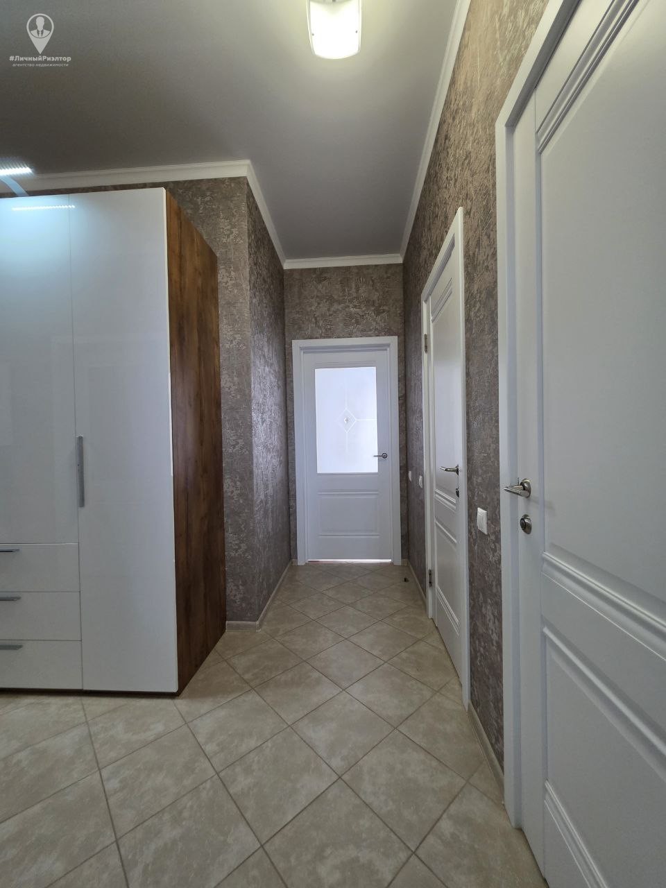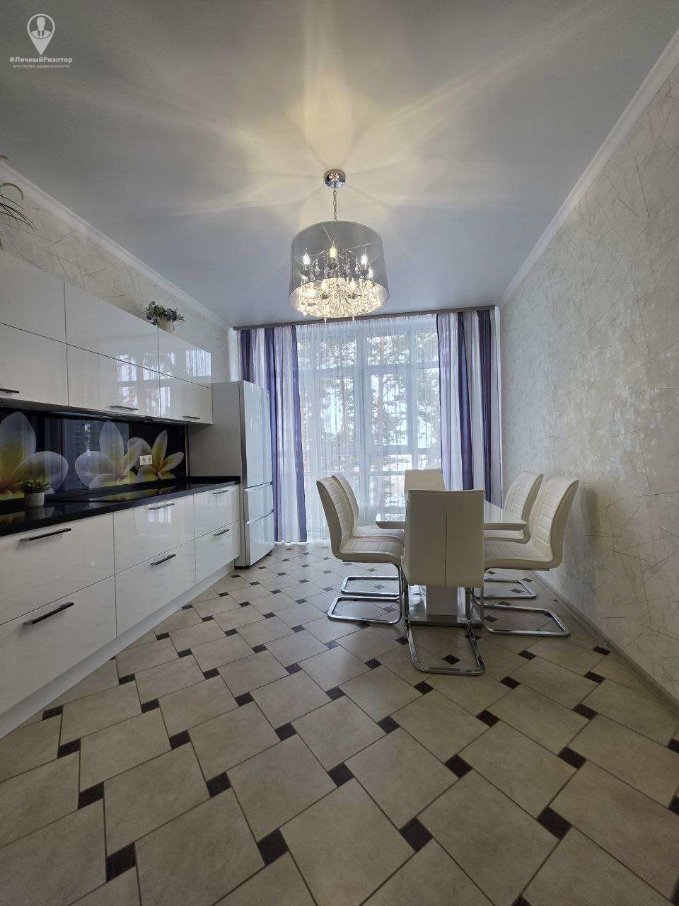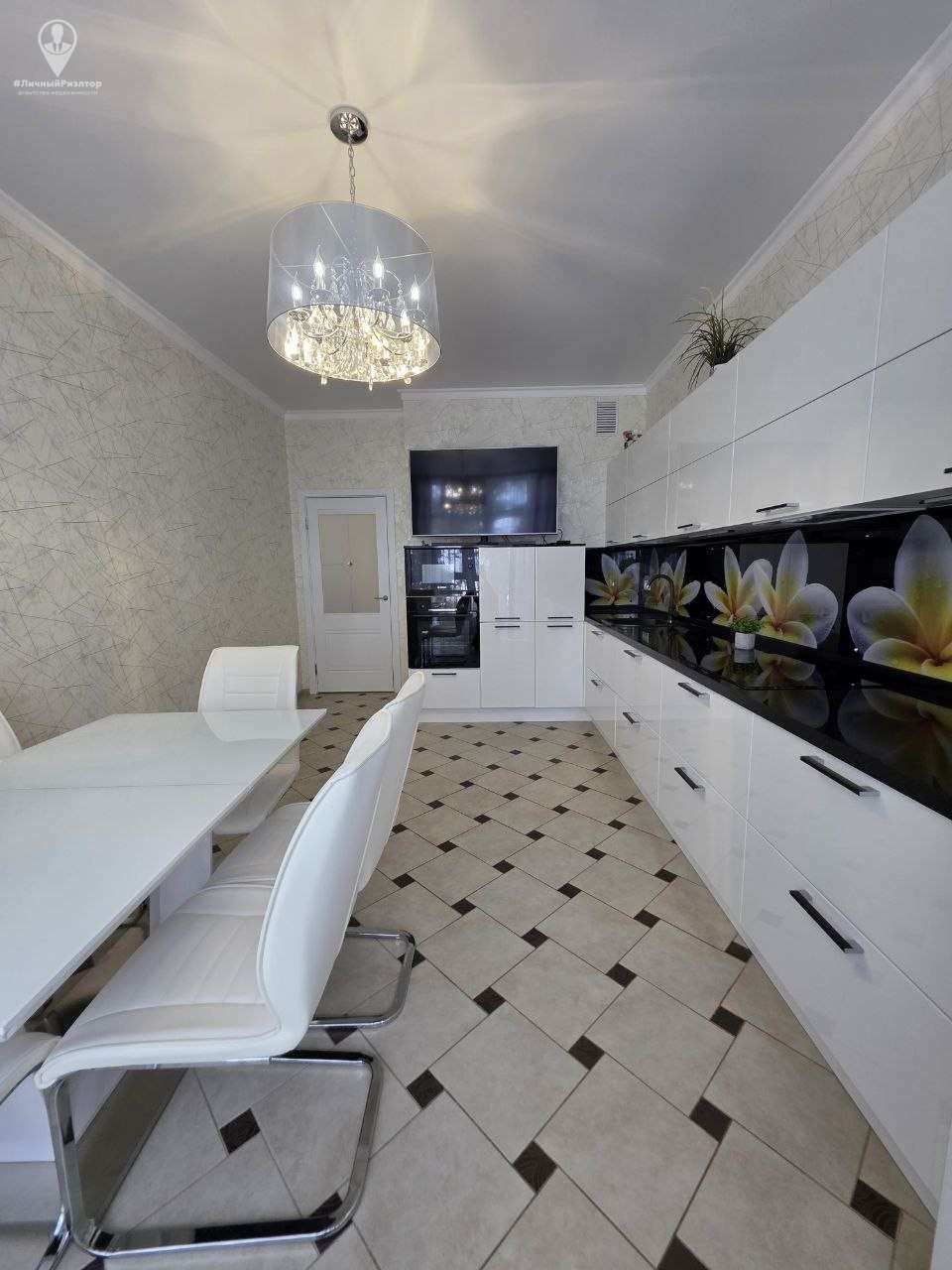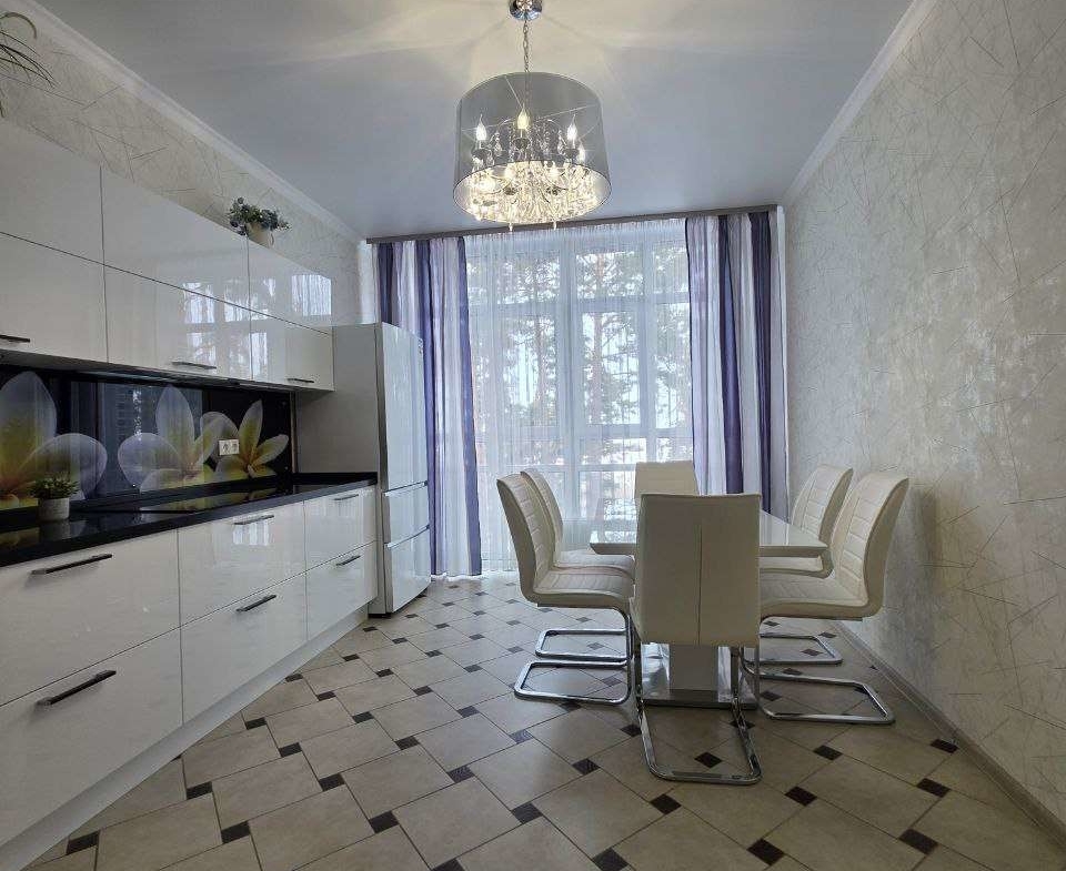 Кухонный гарнитур с глянцевыми фасадами, вместительные системы хранения в прихожей, раздельный санузел в плитке под мрамор. Состояние — «заезжай и живи».