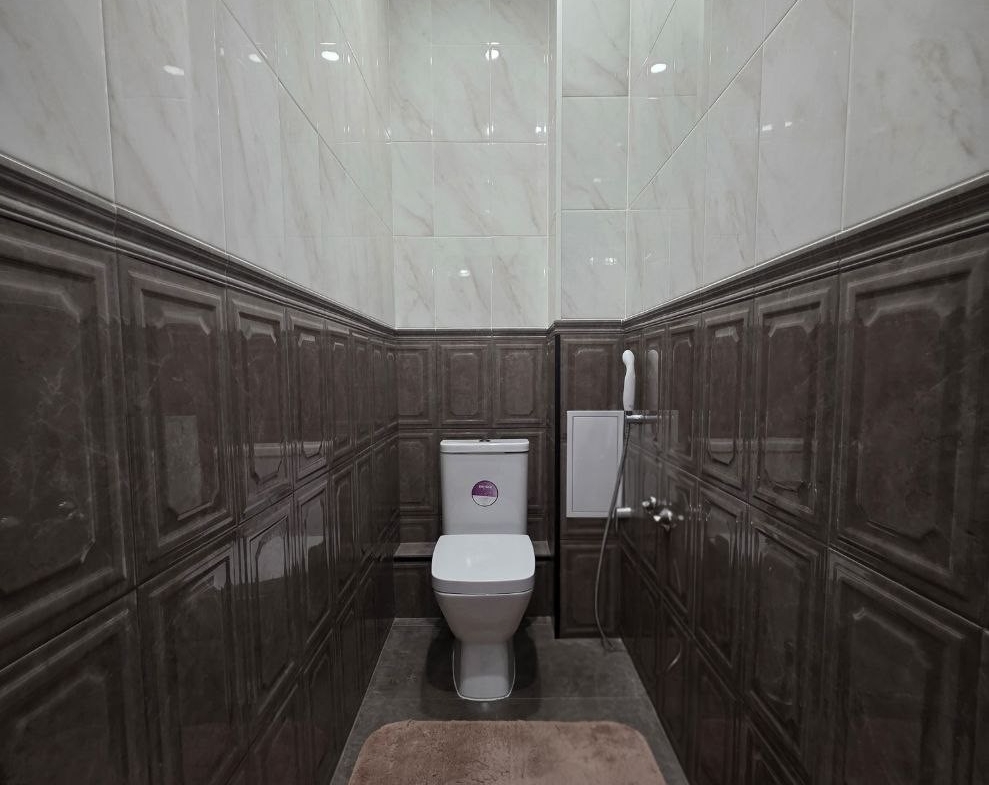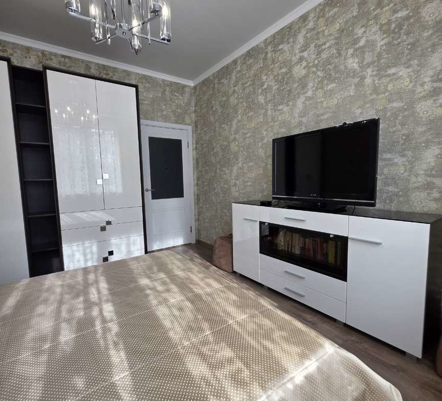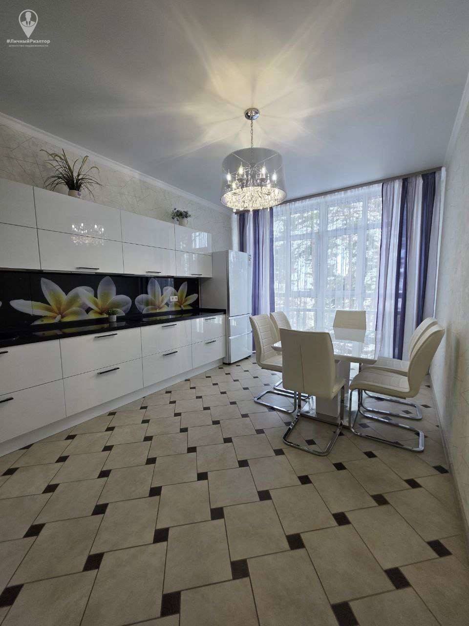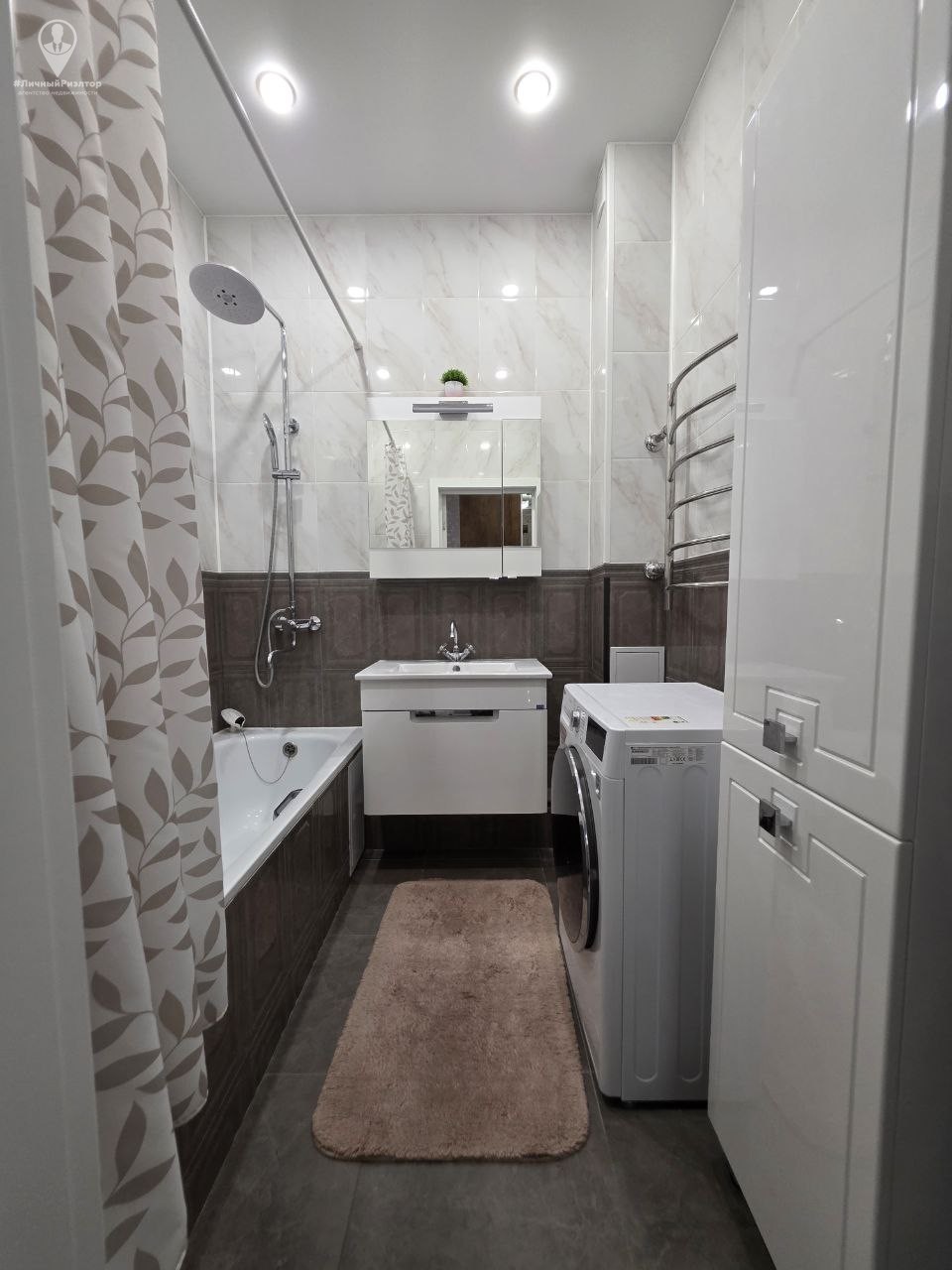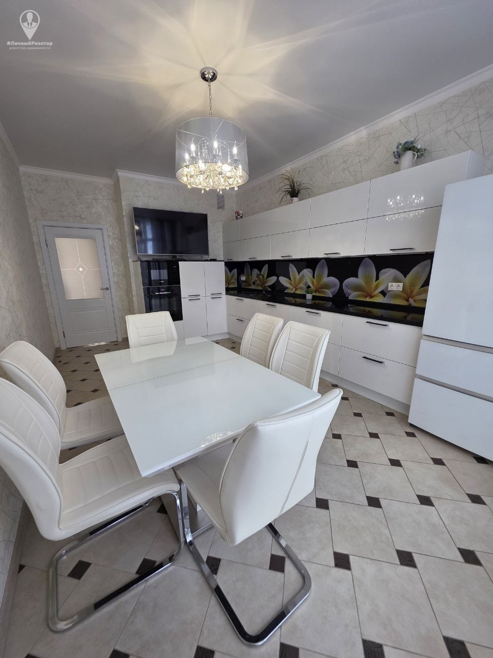 Кухонный гарнитур с глянцевыми фасадами, вместительные системы хранения в прихожей, раздельный санузел в плитке под мрамор. Состояние — «заезжай и живи».