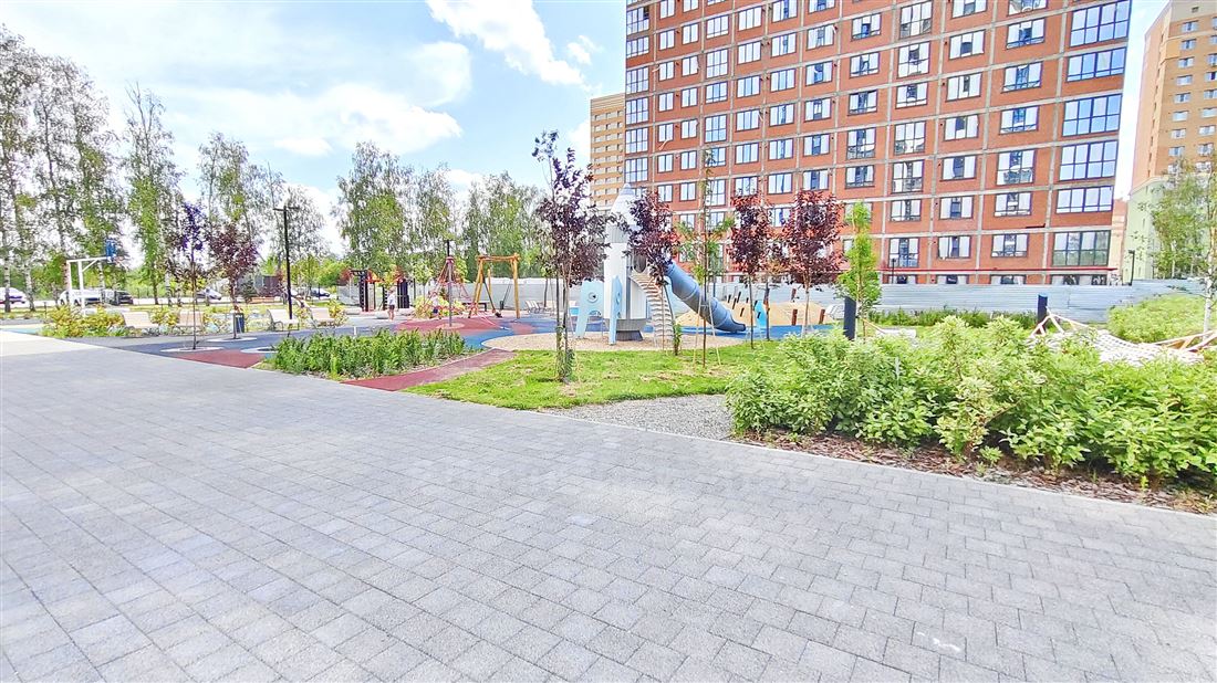 Также во дворе дома большая современная детская площадка.