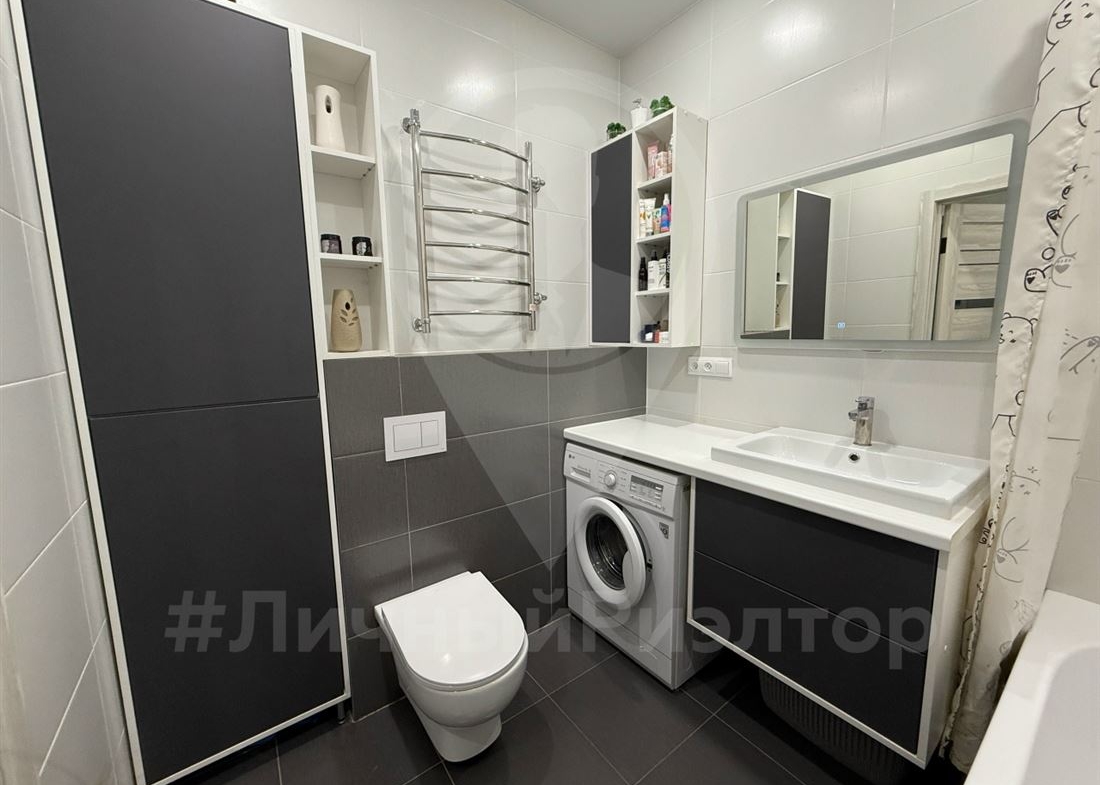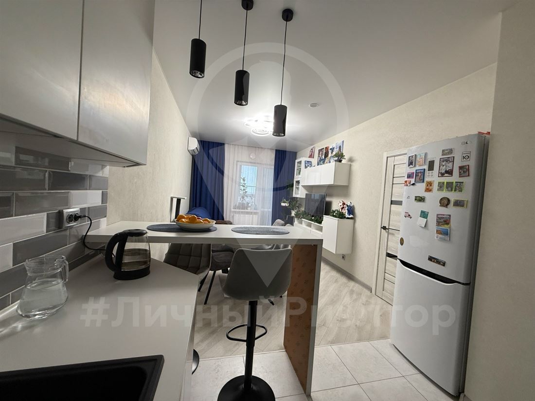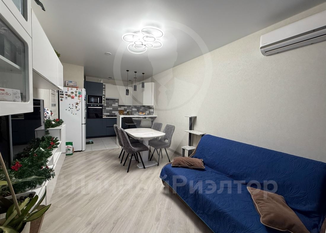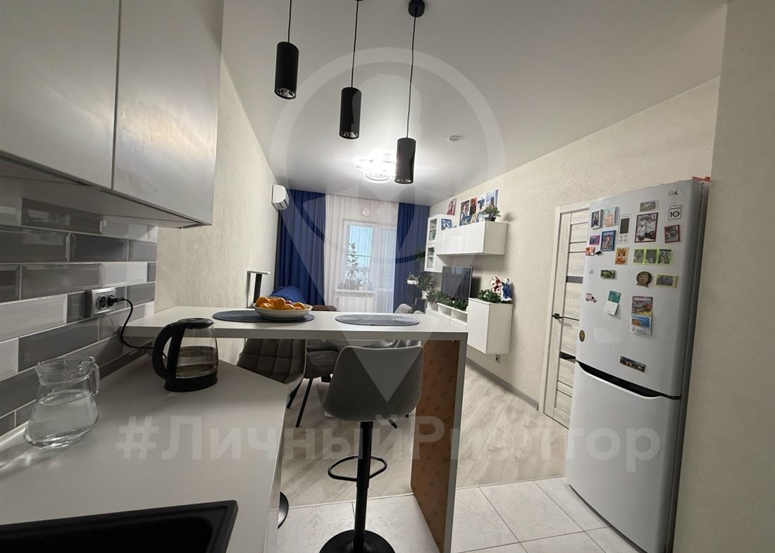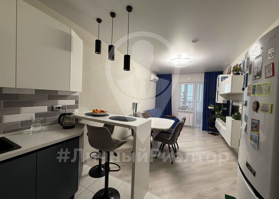 Продаётся светлая, современная 2‑комнатная квартира с продуманной планировкой и свежим ремонтом — идеально для семьи с детьми или пары, ценящей комфорт. Полностью готова к заселению: свежий современный ремонт в едином стиле, нейтральные светлые оттенки, качественные материалы. Удобная планировка: просторная кухня‑гостиная и отдельная большая спальня/детская с двумя полноценными спальными местами и рабочей зоной. Много мест для хранения: встроенные шкафы, продуманные системы на кухне и в ванной, навесные модули в гостиной. Современный кухонный гарнитур до потолка, духовка, варочная панель, вытяжка, вместительный холодильник, барная стойка. Уютная зона отдыха с диваном и ТВ‑зоной, большое количество света. Просторный совмещённый санузел с большой ванной, современным сантехническим оборудованием и нишами для хранения. Установлена стиральная машина, полотенцесушитель, удобная тумба под раковиной и шкафчики для бытовой химии и косметики.
