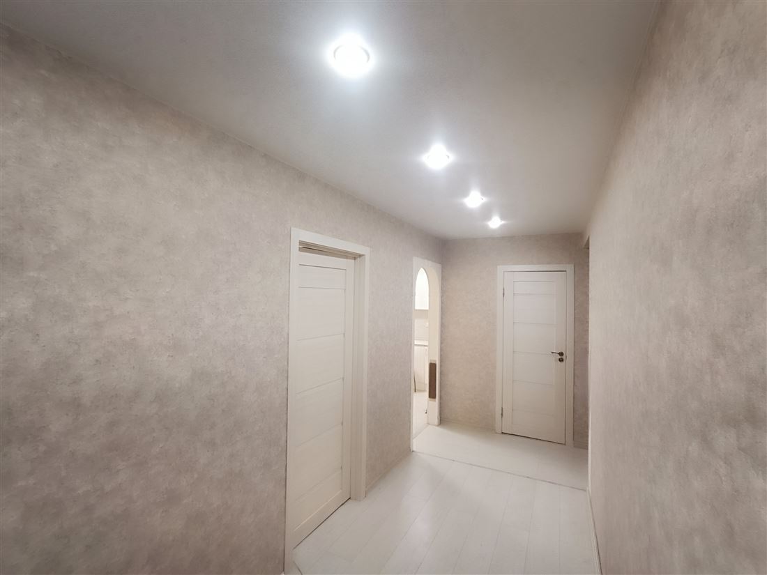В квартире индивидуальное отопление. Установлен кондиционер. Просторная лоджия застекленная. Окна ПВХ. На полу ламинат, натяжные потолки.
