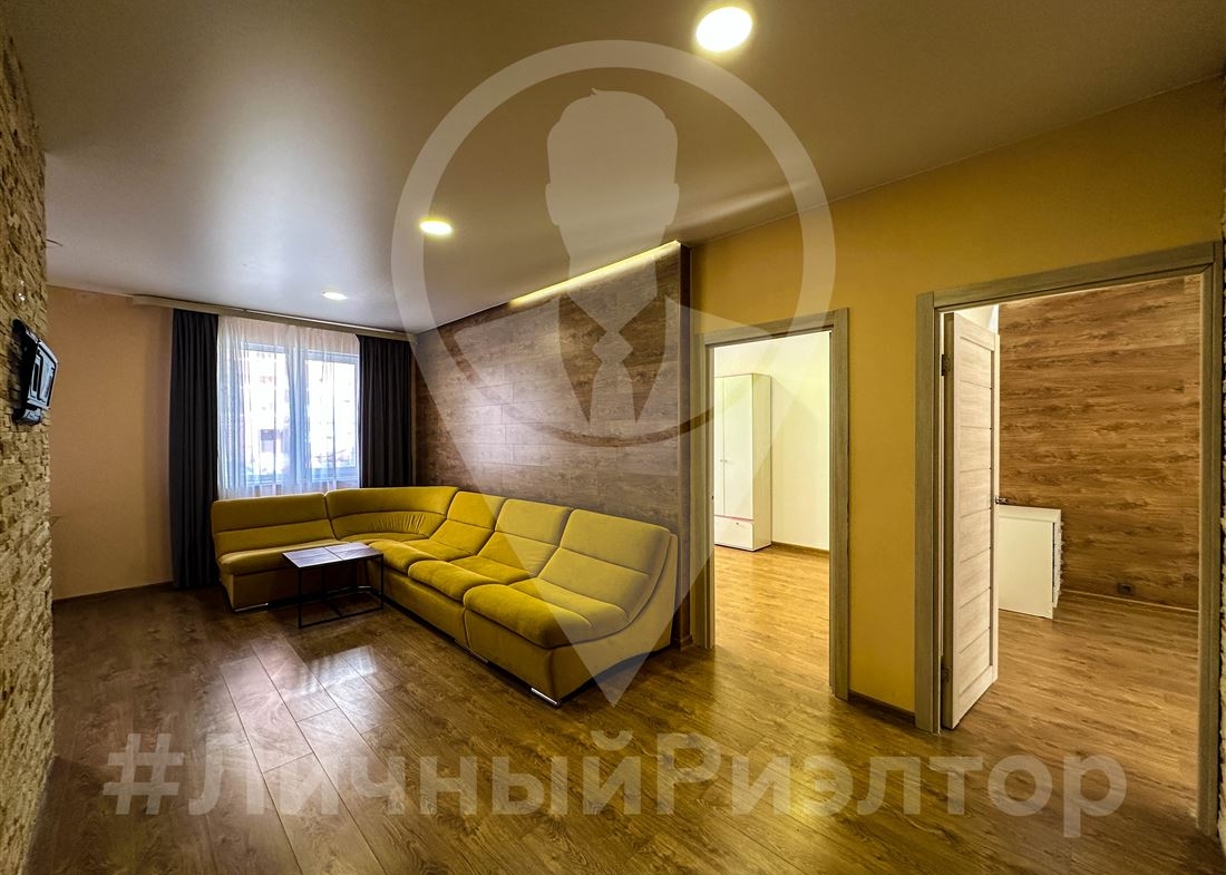 Удобная планировка просторная кухня гостиная, две комнаты и гардеробная.