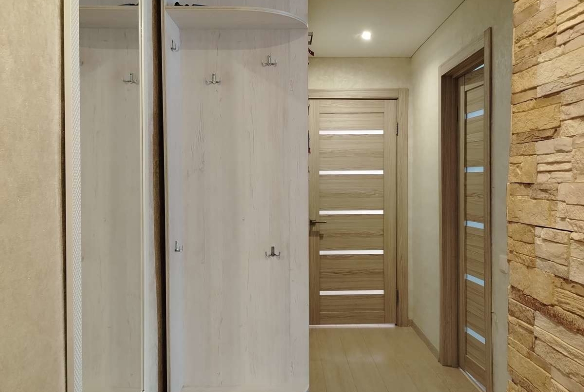 Полностью заменена проводка в квартире и установлен линейный автоматический выключатель, который защищает проводку каждой комнаты от перегрузок и коротких замыканий. Стены выровнены и оклеены обоями приятных тонов, потолки натяжные, полы выровнены, покрытие ламинат. В санузле новая керамическая плитка, установлен хромированный водяной полотенцесушитель. На горячую вода установлена автоматическая газовая колонка, что позволит Вам пользоваться горячей водой круглый год.